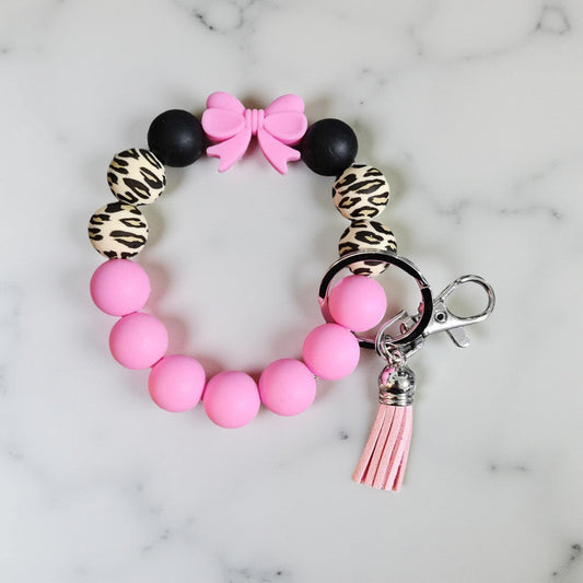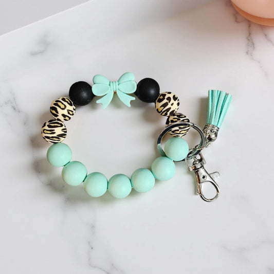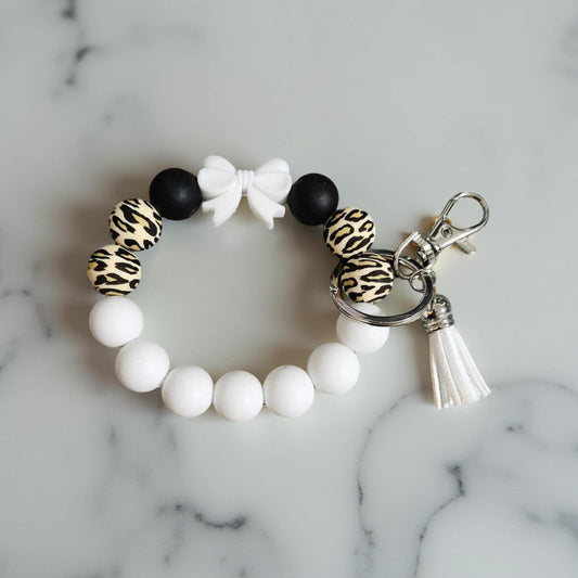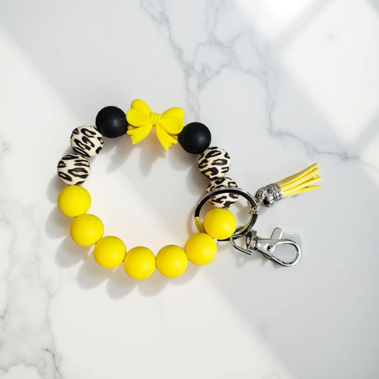 Carry your keys in style with this cute silicone wristlet keychain! They can be easily clipped to bags with the large clasp that is attached. Never lose your keys again!