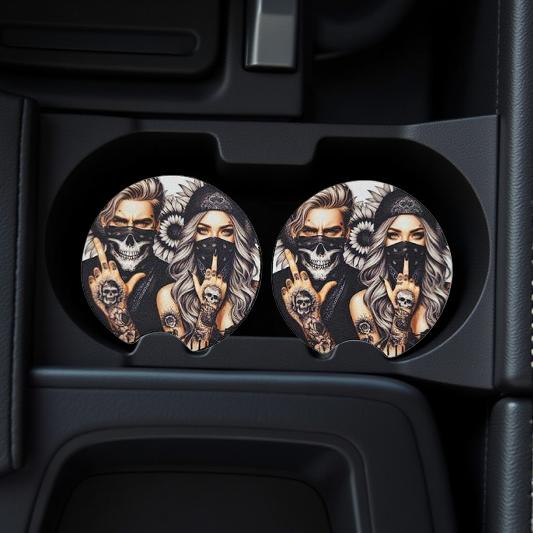Car coasters keep your cup holders clean and dry with added style! Coasters are a universal fit and super-easy to install. Maximum bling for your cup holder.