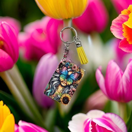 This rectangle keychain measures (L) 4 cm (H) 6 cm