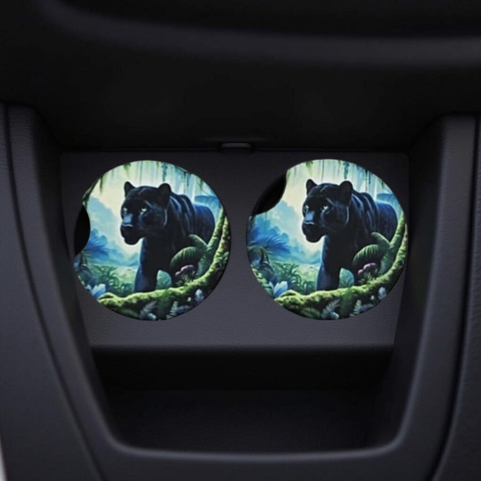 Set of 2 Car Coasters are soft and durable with an anti-slip material. Made from Neoprene rubber with a smooth polyester surface. These fit most cars but please measure your car cup holder prior to purchase. They are easy to remove and clean, just remove the coaster, clean with a wet cloth or wash in water and then sit flat to dry. Car coasters keep your cup holders clean and dry with added style! Coasters are a universal fit and super-easy to install. Maximum bling for your cup holder.