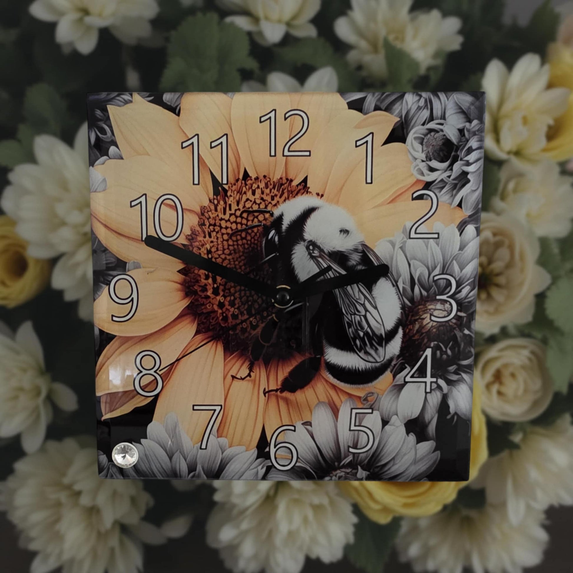 These square glass clocks are 220 mm x 220 mm, 5mm in thickness, and made from tempered glass. These are standing clocks, the stand screws on, and has a diamante at the front, which gives it more of a unique look. This clock would complement any room in the house.