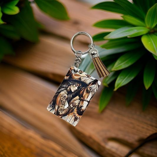 This rectangle keychain measures (L) 4 cm (H) 6 cm
