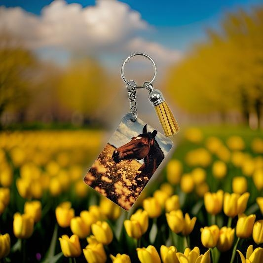This rectangle keychain measures (L) 4 cm (H) 6 cm