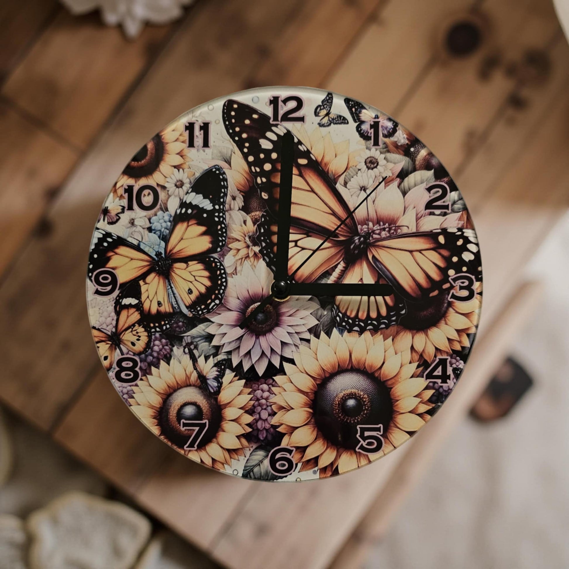 These Round glass clocks measure at 220 mm x 220mm and 5mm in thickness. Made from tempered glass. These are Hanging clocks with the hanging bracket attached. This clock would complement any room in the house.