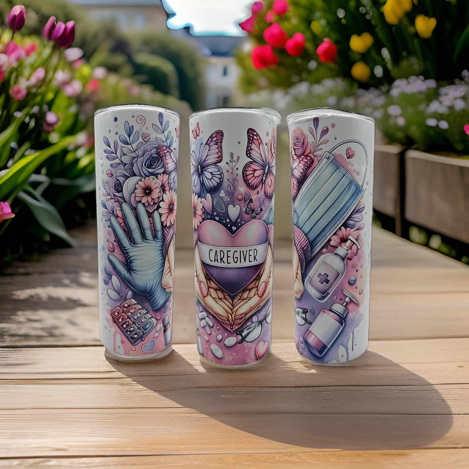 Double walled Insulated stainless steel Tumbler. Will keep drink cold for up to 12 hours and hot drinks hot for up to 6 Hours. They come with Clear Slide Lid, when not in use lid can be closed also comes with reusable Plastic straw. Comes with a Non-Stick bottom Our Tumblers can have a small white border on the bottom and some of our Tumblers can have a white border around the Top also depending on the Design