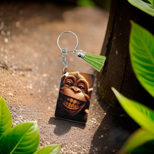 This rectangle keychain measures (L) 4 cm (H) 6 cm