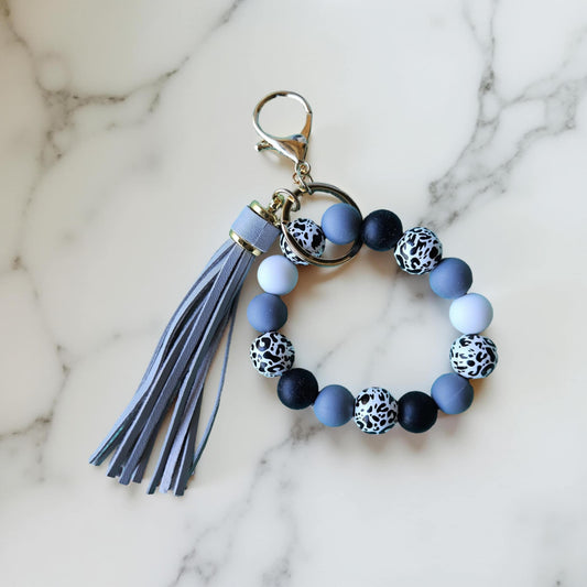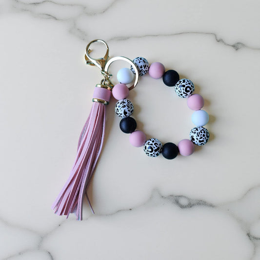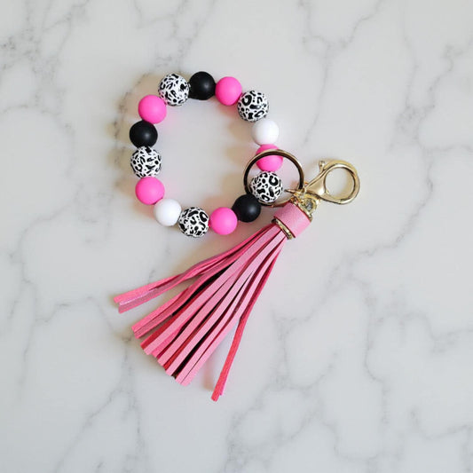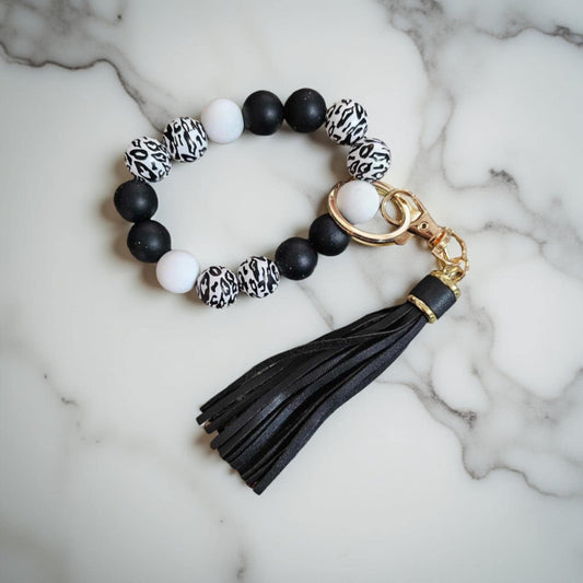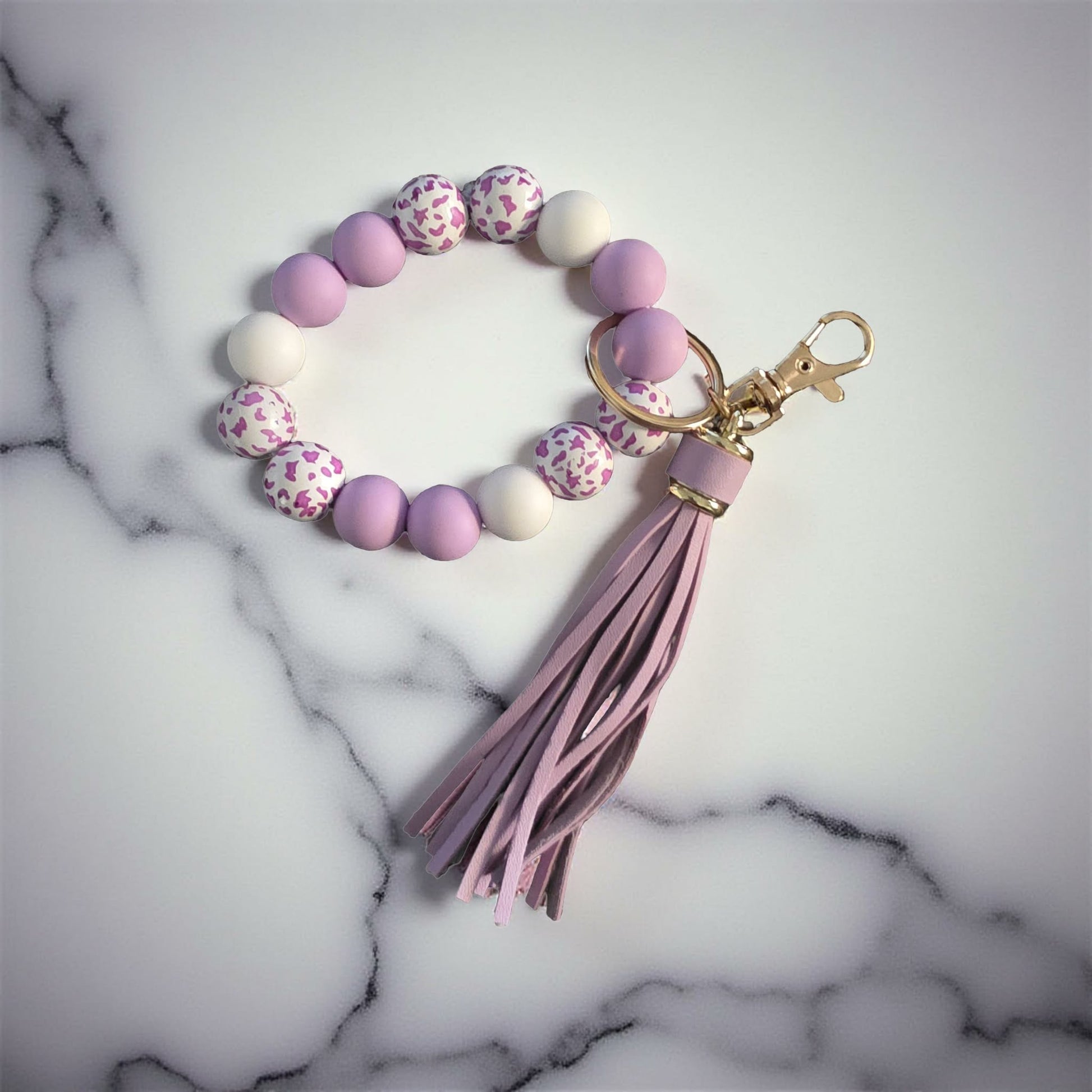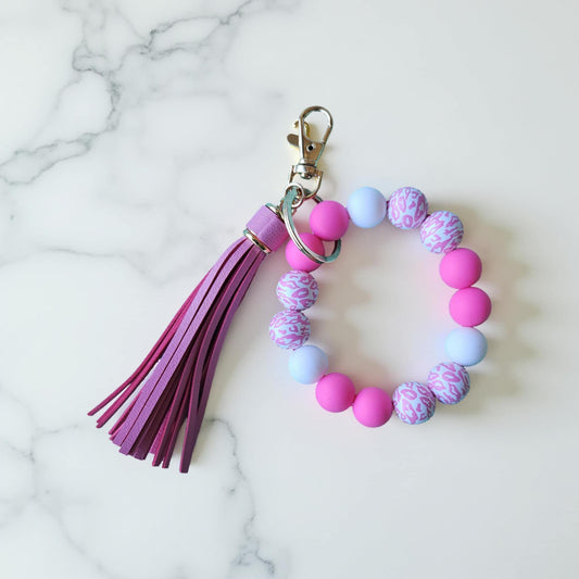 Carry your keys in style with this cute silicone wristlet keychain! They can be easily clipped to bags with the large clasp that is attached. Never lose your keys again!