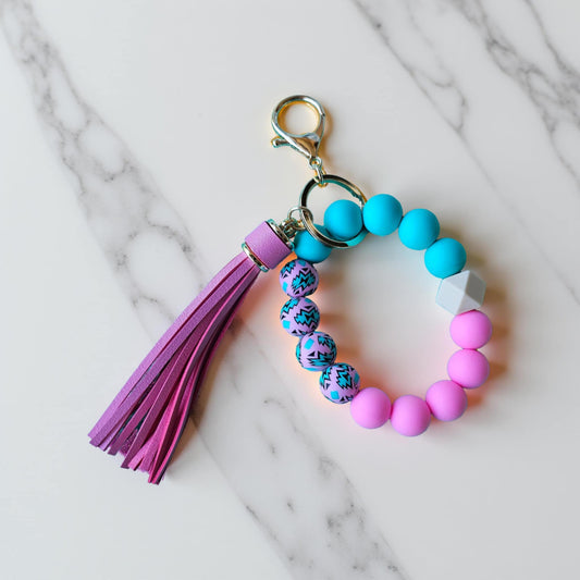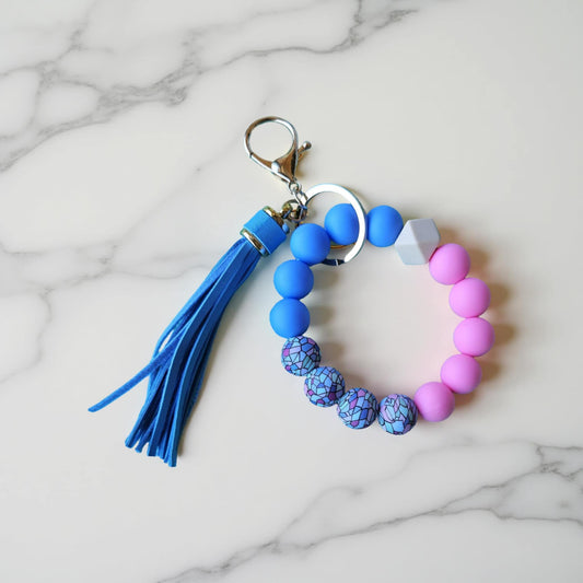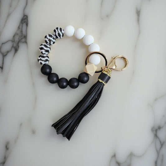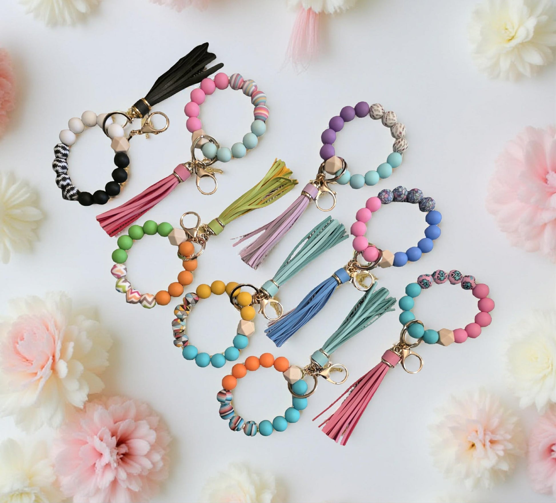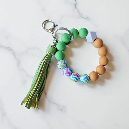 Carry your keys in style with this cute silicone wristlet keychain! They can be easily clipped to bags with the large clasp that is attached. Never lose your keys again!