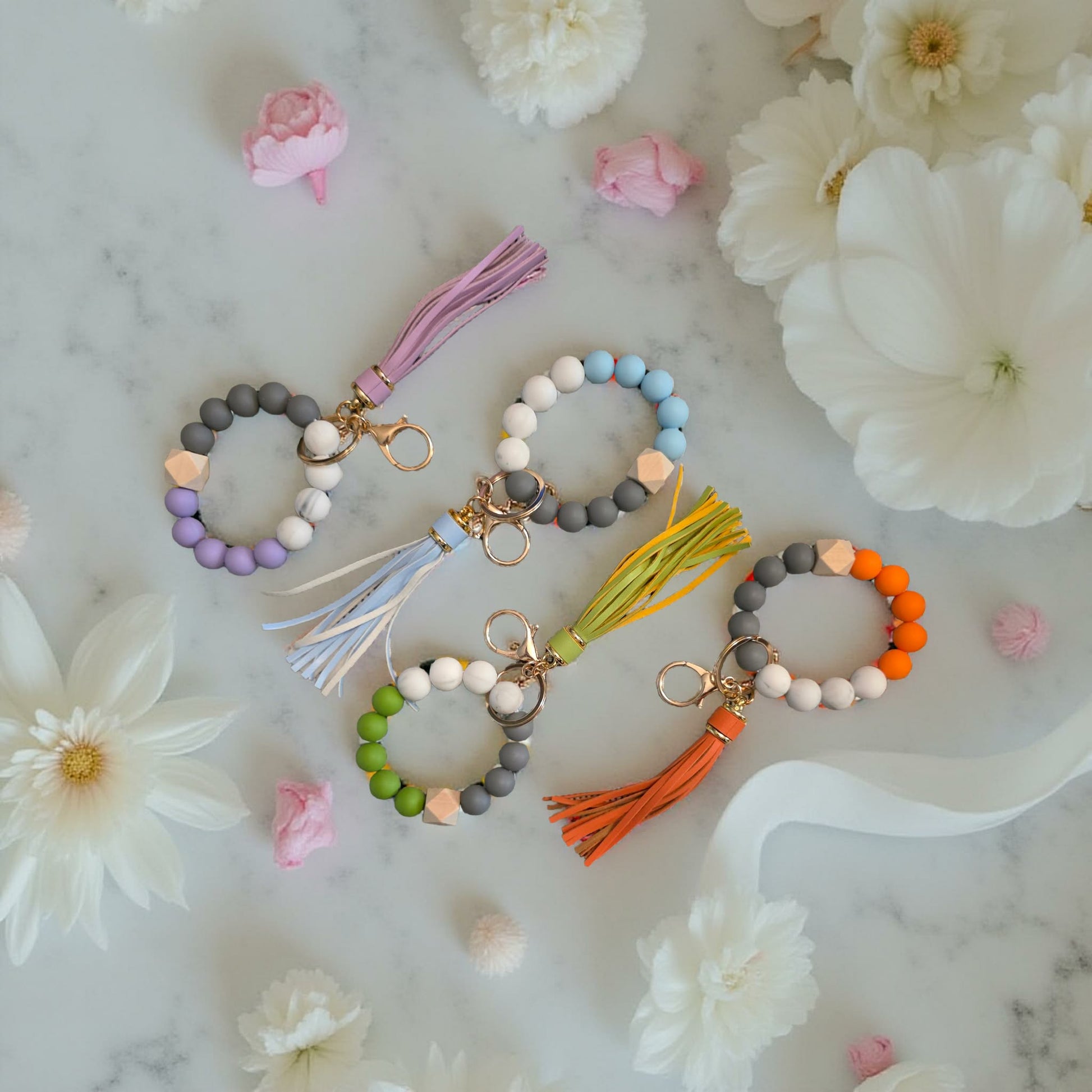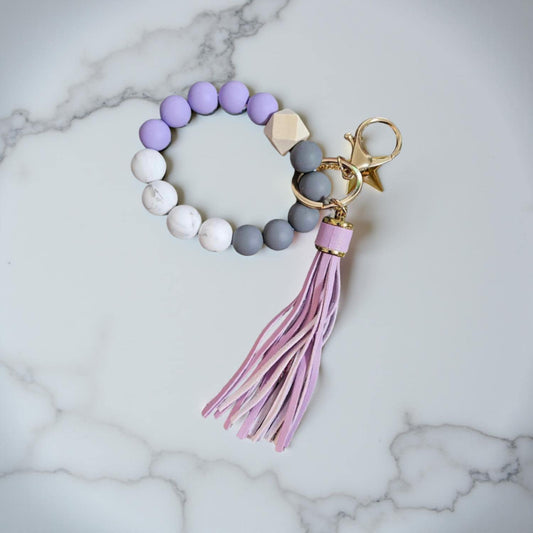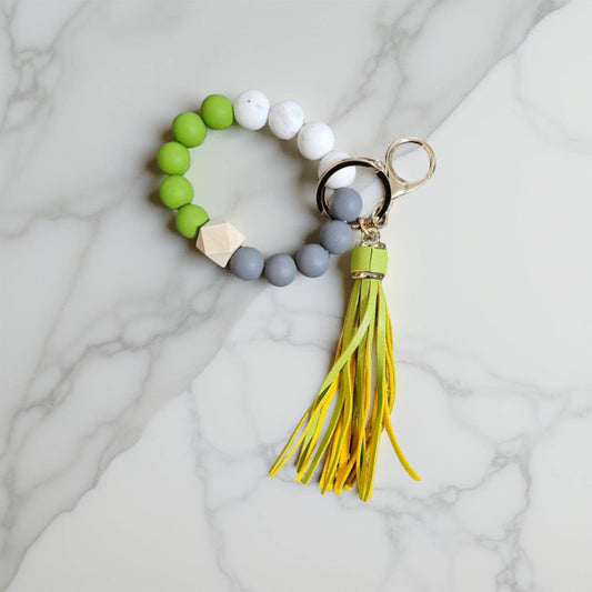 Carry your keys in style with this cute silicone wristlet keychain! They can be easily clipped to bags with the large clasp that is attached. Never lose your keys again!