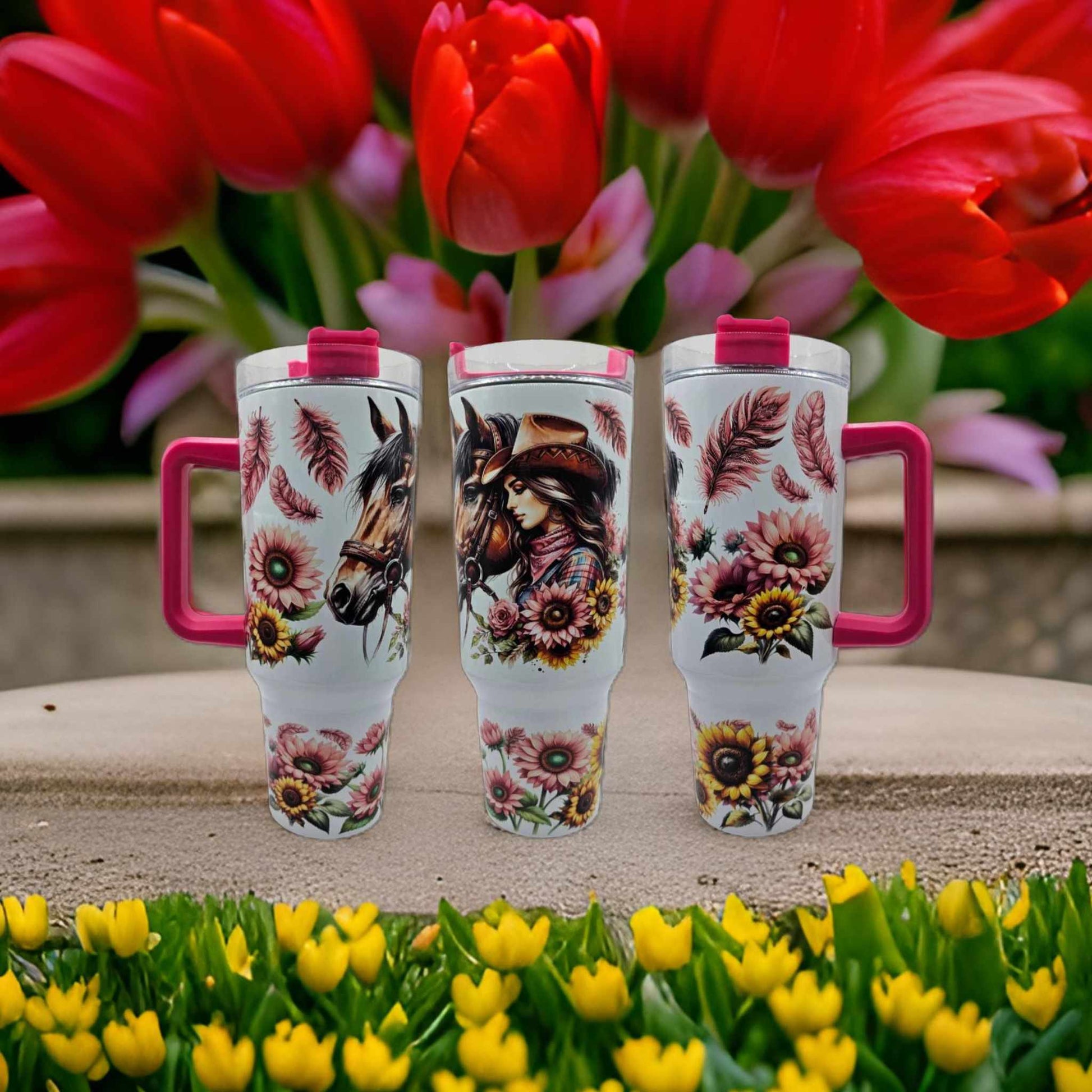 Double walled insulated stainless steel Tumbler. Will keep drinks cold for up to 12 hours and hot drinks hot for up to 6 Hours. They come with a Slide Lid, when not in use lid can be closed. Pink coloured Handle Comes with reusable straw