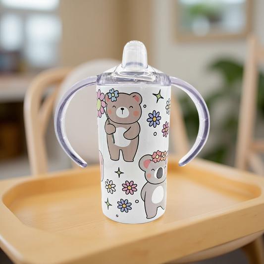 Sippy Cups are double-walled insulated stainless steel. Will keep drinks hot or cold for hours.