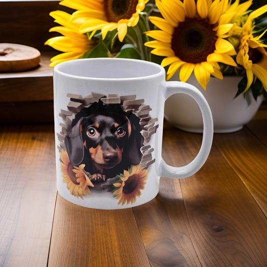 Dachshund looking through hole in wall is great for anyone who loves Dachshunds . The mug handles are the same colour as inside the mug to add a little bit of extra WOW to your mug. Choose from 10 different colours. They are also Individually boxed.