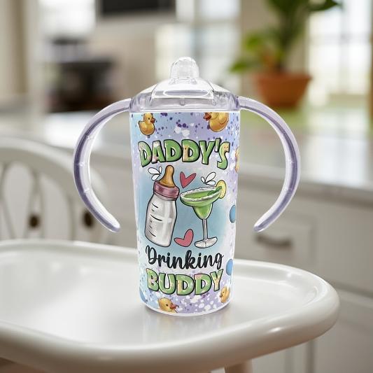 Sippy Cups are double-walled insulated stainless steel. Will keep drinks hot or cold for hours.