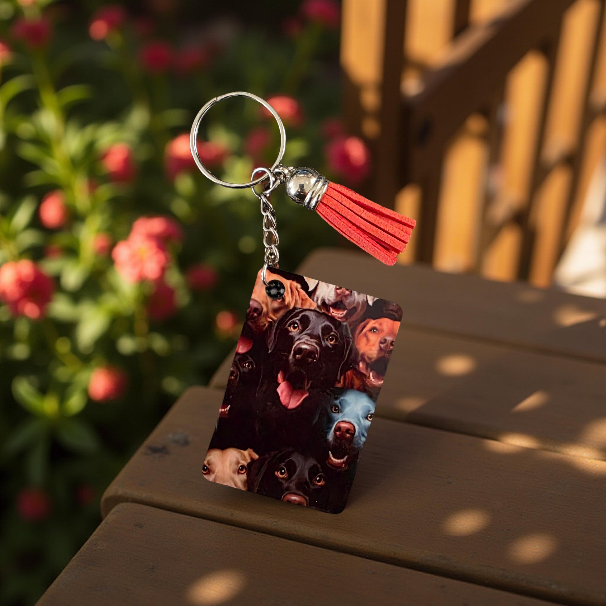 This rectangle keychain measures (L) 4 cm (H) 6 cm