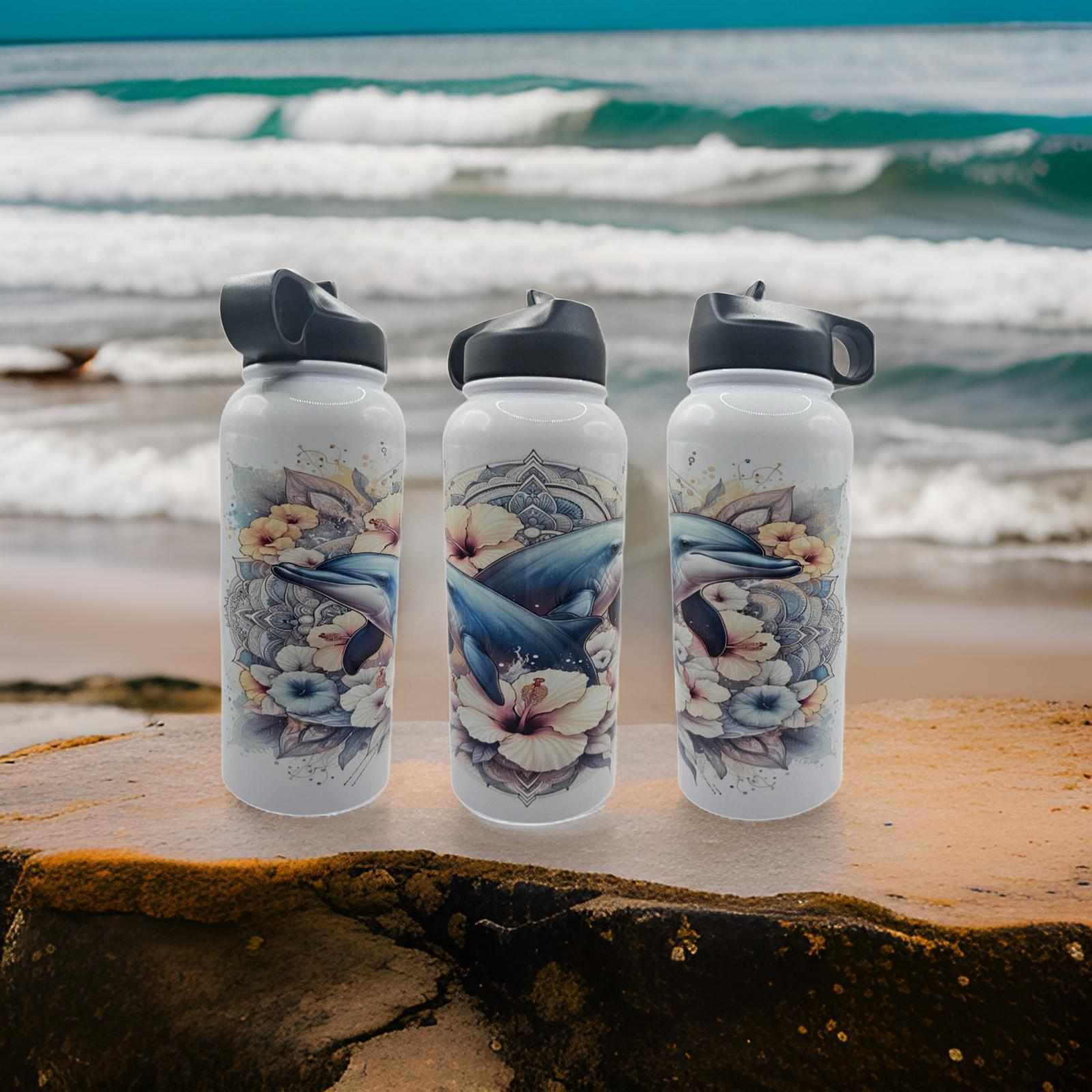 Drink Bottle is Insulated, double walled Vacuum sealed stainless steel. Will keep drink cold for hours. Comes with Straw and BPA free lids that screw on. Lid features a handle to carry bottle.