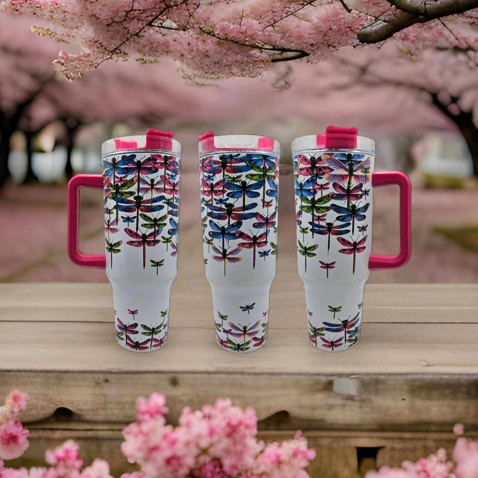 Double walled insulated stainless steel Tumbler. Will keep drinks cold for up to 12 hours and hot drinks hot for up to 6 Hours. They come with a Slide Lid, when not in use lid can be closed. Pink coloured Handle Comes with reusable straw