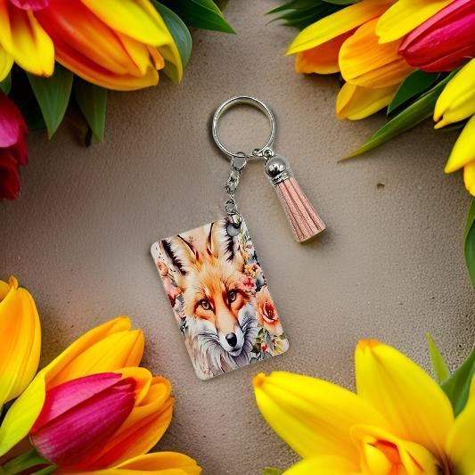 This rectangle keychain measures (L) 4 cm (H) 6 cm