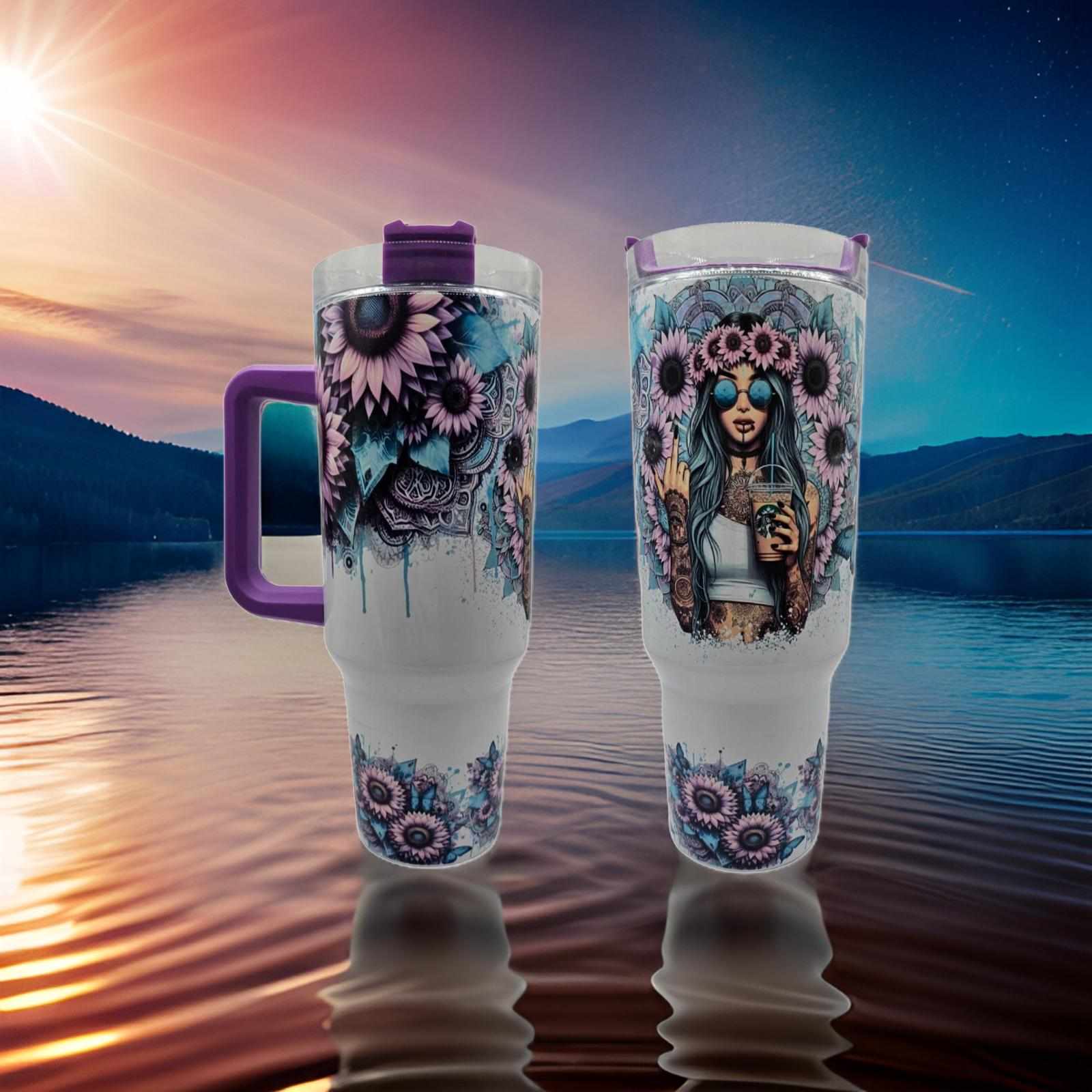 Double walled insulated stainless steel Tumbler. Will keep drinks cold for up to 12 hours and hot drinks hot for up to 6 Hours. They come with a Slide Lid, when not in use lid can be closed. White coloured Handle. Comes with reusable straw