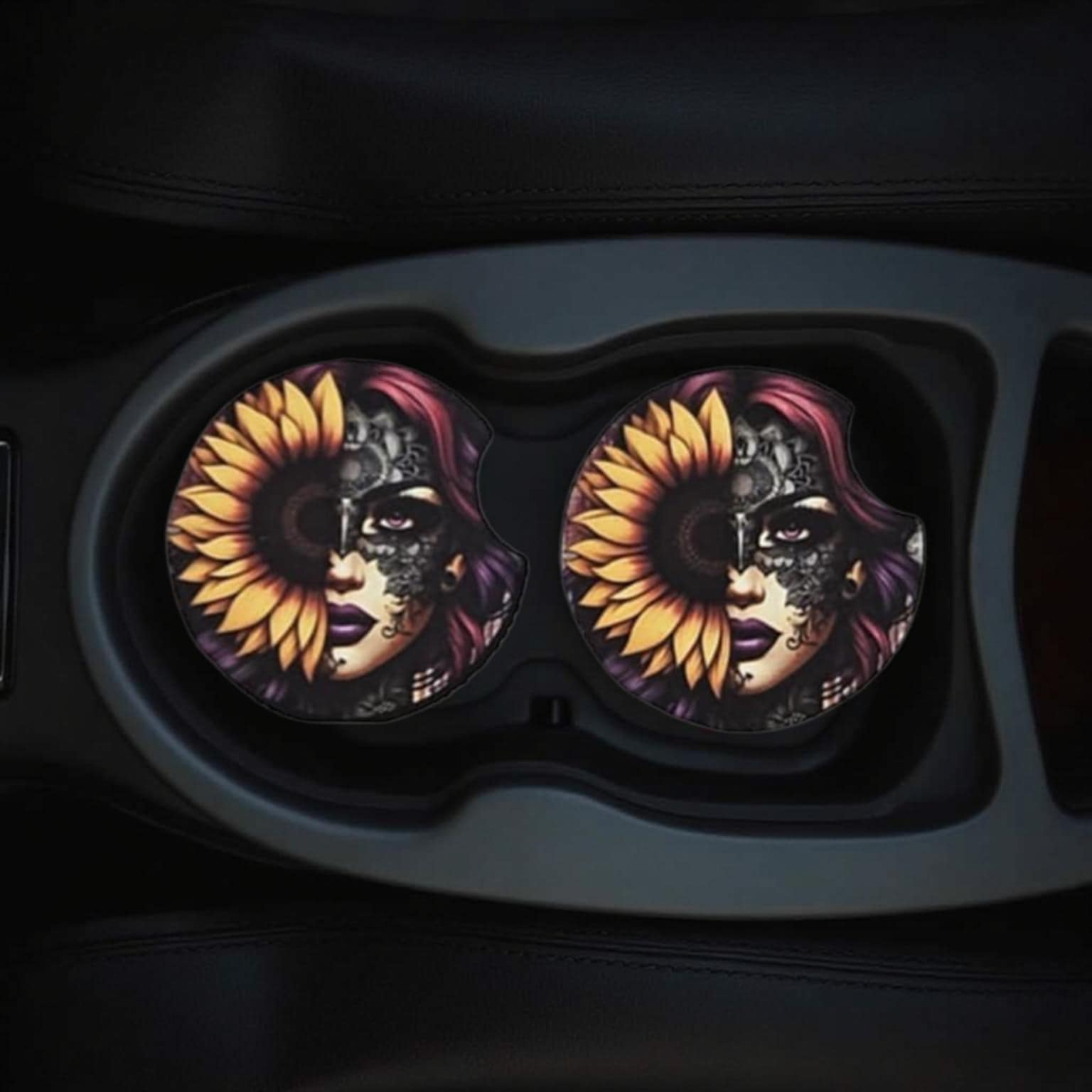 Set of 2 Car Coasters are soft and durable with an anti-slip material. Made from Neoprene rubber with a smooth polyester surface. These fit most cars but please measure your car cup holder prior to purchase. They are easy to remove and clean, just remove the coaster, clean with a wet cloth or wash in water and then sit flat to dry. Car coasters keep your cup holders clean and dry with added style! Coasters are a universal fit and super-easy to install. Maximum bling for your cup holder.