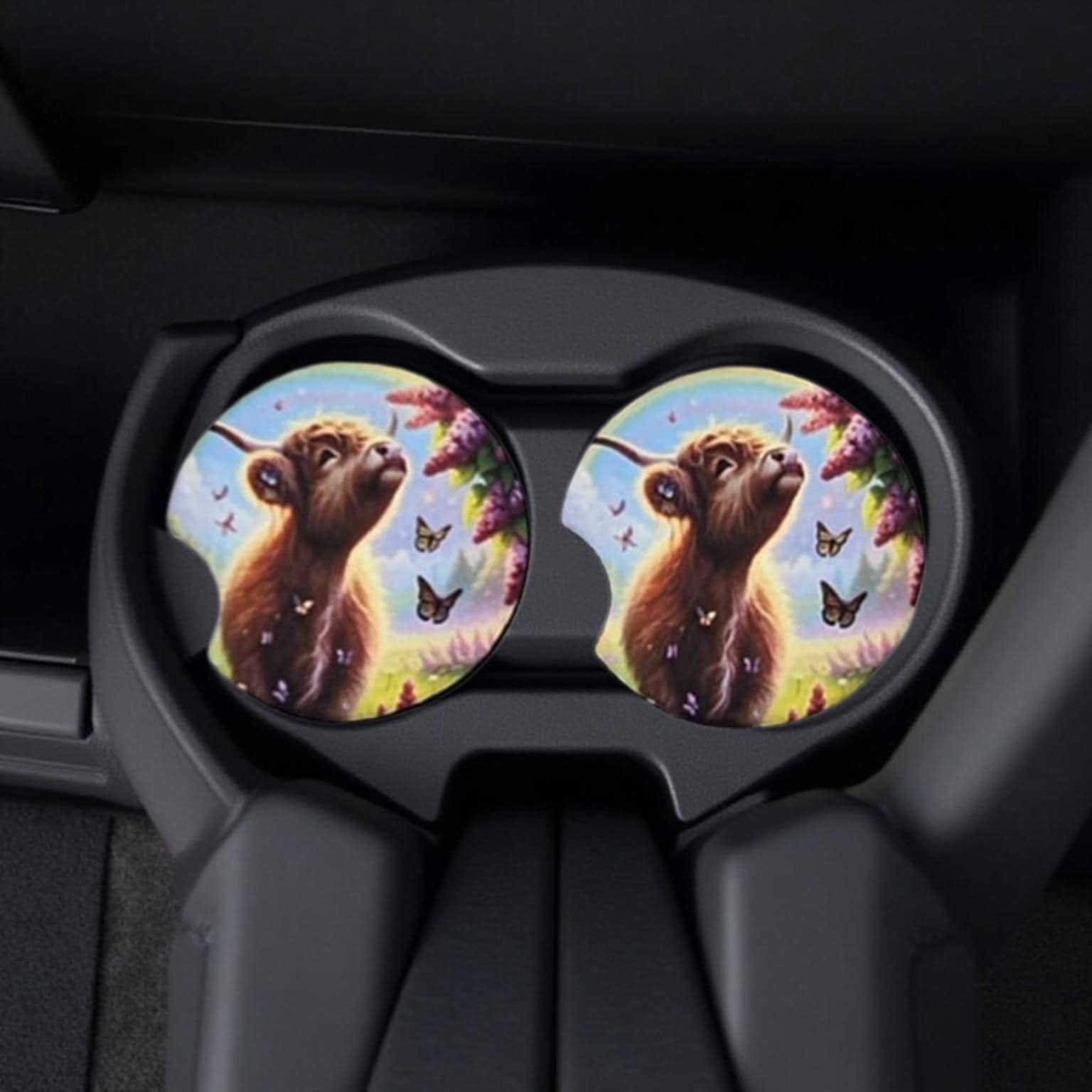 Set of 2 Car Coasters are soft and durable with an anti-slip material. Made from Neoprene rubber with a smooth polyester surface. These fit most cars but please measure your car cup holder prior to purchase. They are easy to remove and clean, just remove the coaster, clean with a wet cloth or wash in water and then sit flat to dry. Car coasters keep your cup holders clean and dry with added style! Coasters are a universal fit and super-easy to install. Maximum bling for your cup holder.