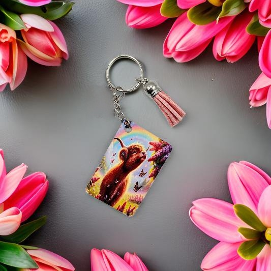 This rectangle keychain measures (L) 4 cm (H) 6 cm