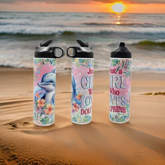 Drink Bottle is Insulated, double walled Vacuum sealed stainless steel. Will keep drink cold for hours. Comes with Straw and BPA free lids that screw on. Lid features a handle to carry bottle.