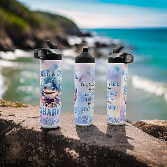 Drink Bottle is Insulated, double walled Vacuum sealed stainless steel. Will keep drink cold for hours. Comes with Straw and BPA free lids that screw on. Lid features a handle to carry bottle.