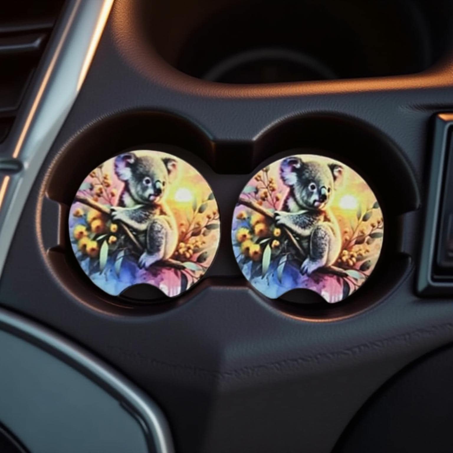 Set of 2 Car Coasters are soft and durable with an anti-slip material. Made from Neoprene rubber with a smooth polyester surface. These fit most cars but please measure your car cup holder prior to purchase. They are easy to remove and clean, just remove the coaster, clean with a wet cloth or wash in water and then sit flat to dry. Car coasters keep your cup holders clean and dry with added style! Coasters are a universal fit and super-easy to install. Maximum bling for your cup holder.