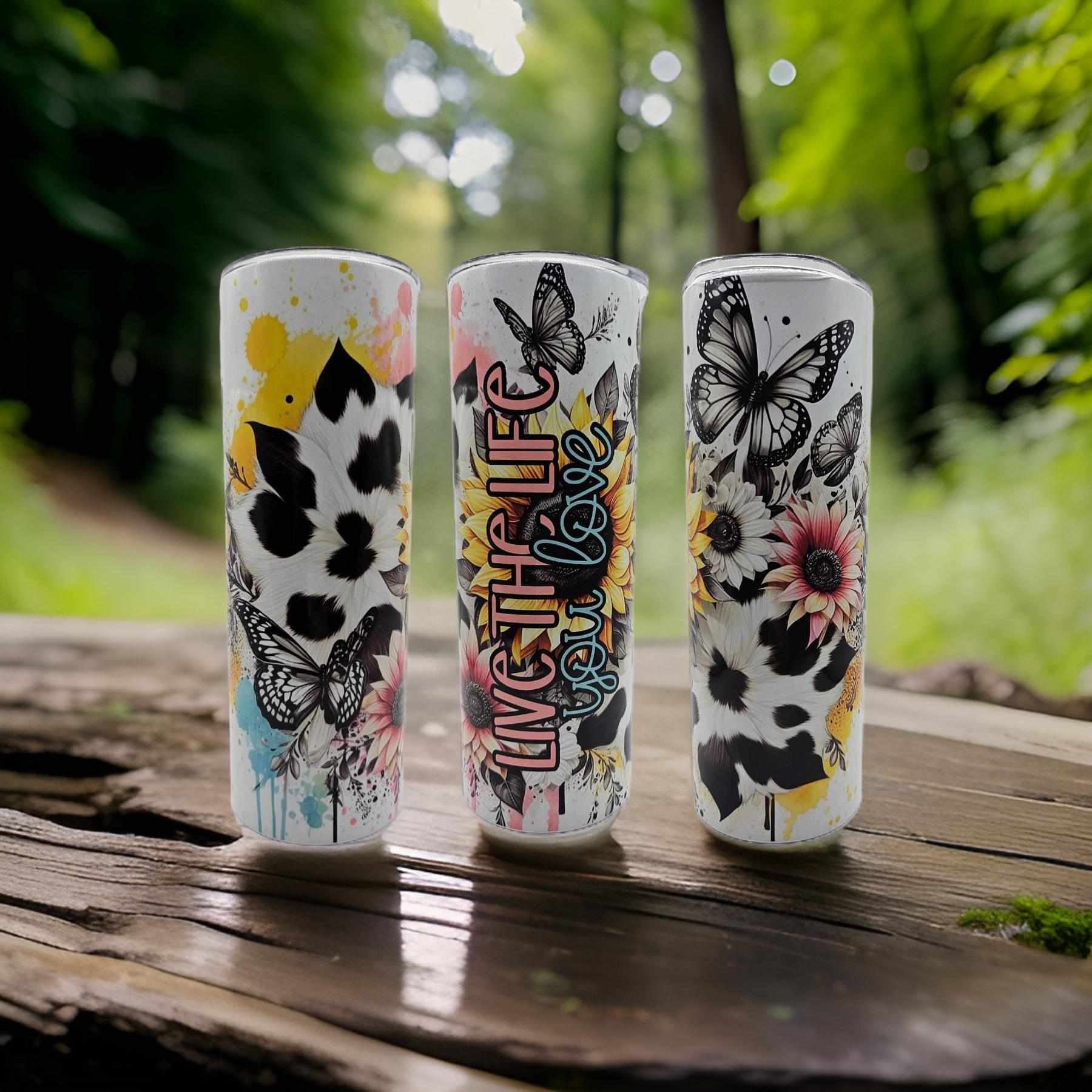 Double walled Insulated stainless steel Tumbler. Will keep drink cold for up to 12 hours and hot drinks hot for up to 6 Hours. They come with Clear Slide Lid, when not in use lid can be closed also comes with reusable Plastic straw. Comes with a Non-Stick bottom Our Tumblers can have a small white border on the bottom and some of our Tumblers can have a white border around the Top also depending on the Design
