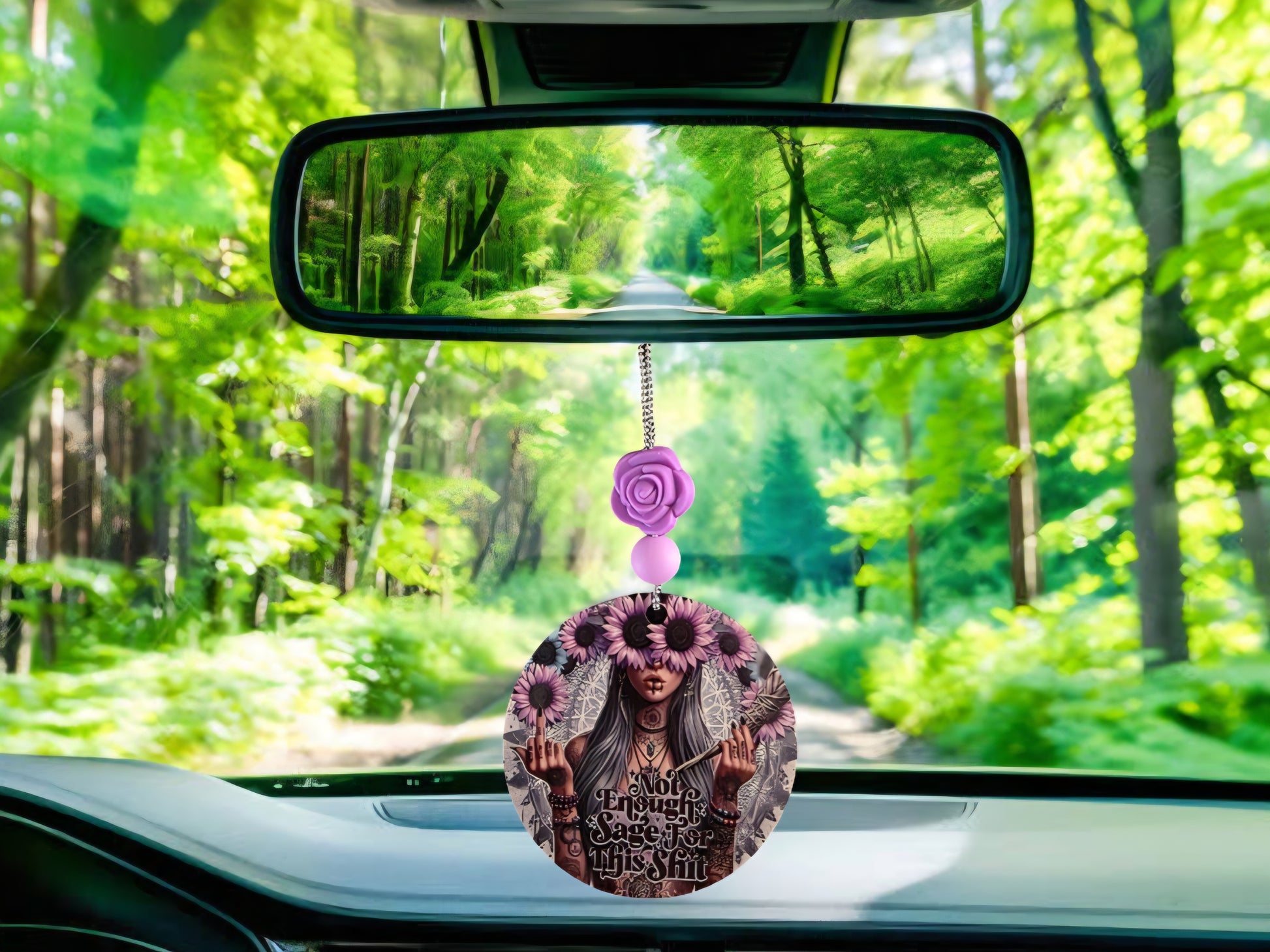 Disc is 7 cm Hanging length is 30 cm The disc is made out of MDF material, and the Chain is a Metal beaded chain, joint together by metal connectors.
