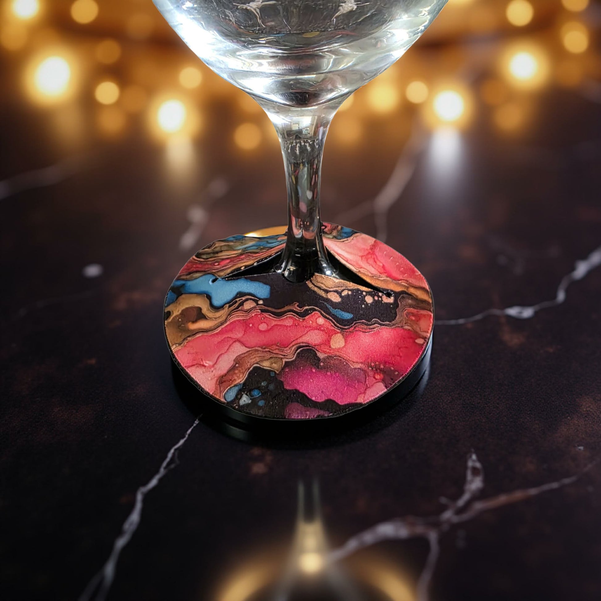 Our Wine Glass Coasters will make wine glasses easily identifiable at any gathering with its stunning design. Made from durable Neoprene will stop condensation from wetting your table or linen. Fits easily and directly onto the base of most stemmed wine, champagne and beer glasses.