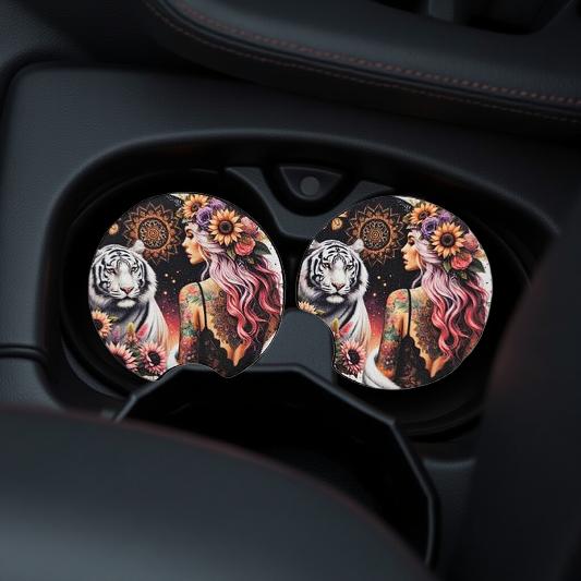 Car coasters keep your cup holders clean and dry with added style! Coasters are a universal fit and super-easy to install. Maximum bling for your cup holder.