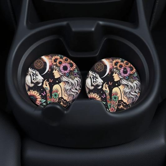 Car coasters keep your cup holders clean and dry with added style! Coasters are a universal fit and super-easy to install. Maximum bling for your cup holder.