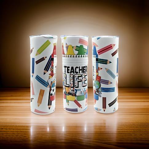 Our Tumblers have a small white border on the bottom and some of our Tumblers have a white border around the Top also depending on the Design