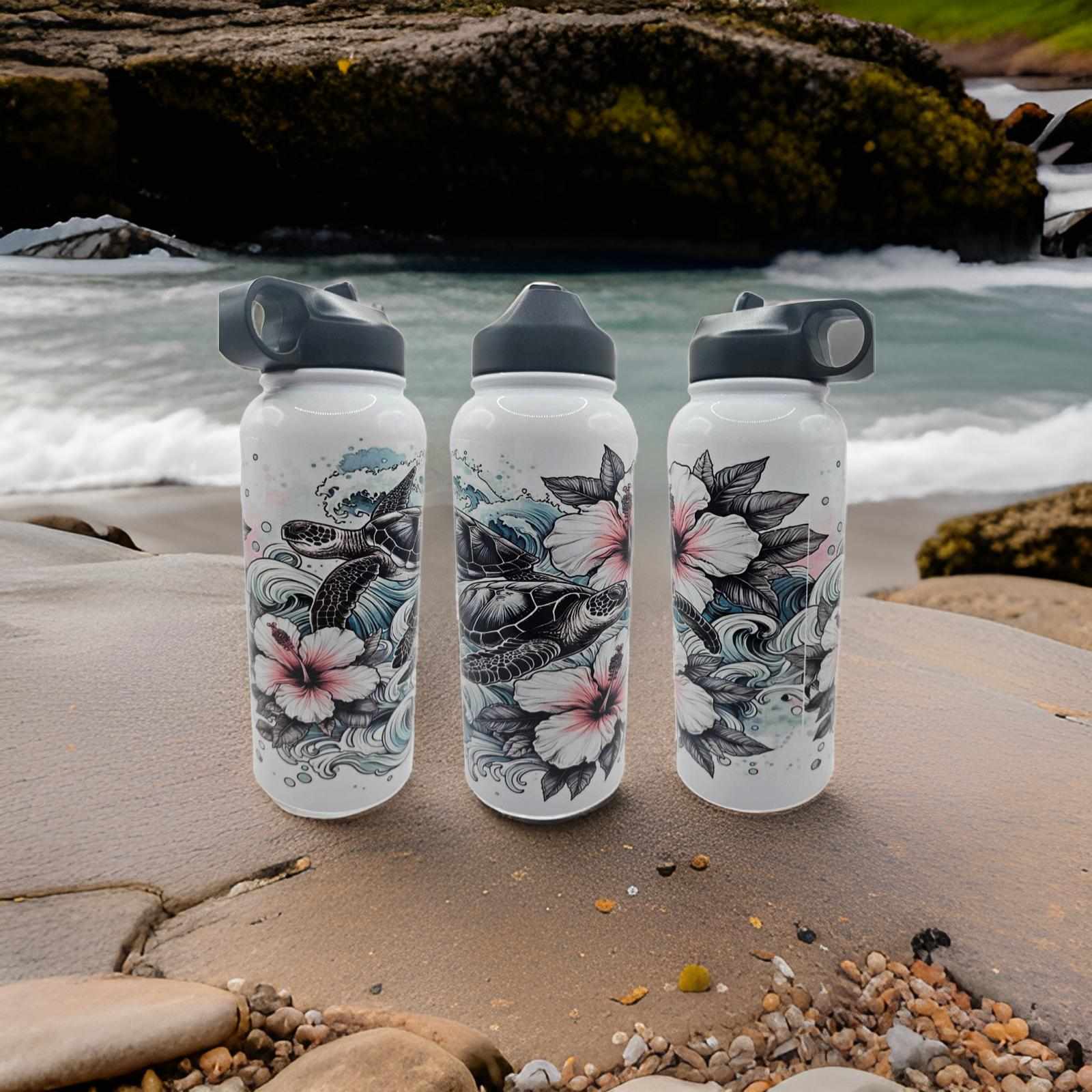 Drink Bottle is Insulated, double walled Vacuum sealed stainless steel. Will keep drink cold for hours. Comes with Straw and BPA free lids that screw on. Lid features a handle to carry bottle.
