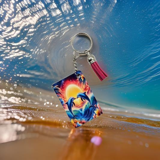 This rectangle keychain measures (L) 4 cm (H) 6 cm