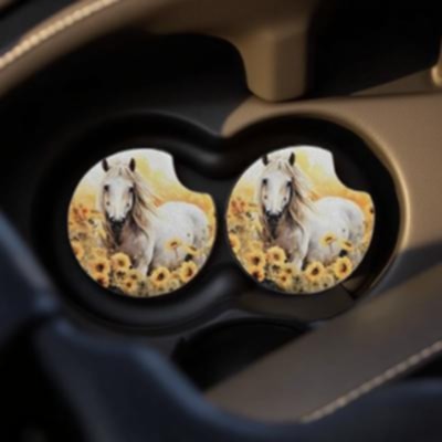 Car coasters keep your cup holders clean and dry with added style! Coasters are a universal fit and super-easy to install. Maximum bling for your cup holder.